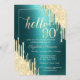 Gold Glitter Drips Green Metallic 90th Birthday Invitation