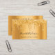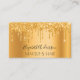 An elegant and glamourous business card on a faux gold metallic looking background decorated with faux gold glitter drip on front. Elegant black hand lettered style script. Templates for Your name, title, phone number, mail and website adsress. The card is also available in our store with social media icons.
