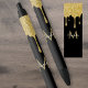 Gold Glitter Drips Monogram Elegant Girly Script Black Ink Pen