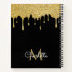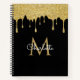 Gold Glitter Drips Monogram Elegant Girly Script Notebook