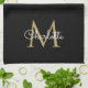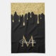 Gold Glitter Drips Monogram Elegant Girly Script Tea Towel