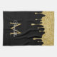 Chic gold glitter drips monogram kitchen towel. Designed by Thisisnotme©
