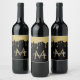 Gold Glitter Drips Monogram Elegant Script Wine Label