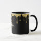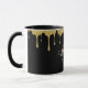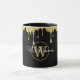 Chic gold glitter drips, script name, and gold monogram on a black background mug. You can personalise the name, monogram and customise the font and colours to create your own unique design. Designed by Thisisnotme©