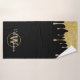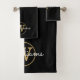 Chic gold glitter drips, script name and gold monogram on a black background towel set. You can personalize the name, monogram and customize the font and colors to create your own unique design. Designed by Thisisnotme©