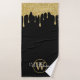 Gold Glitter Drips Monogram Script Name Bath Towel Set