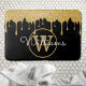 Gold Glitter Drips Monogram Stylish Script Black Bath Mat