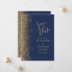 Gold Glitter Edge Navy Blue Save the Date Announcement