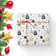 Modern glitter Christmas snowflake with ball pattern gift wrap. Hand-drawn reindeer and trees give this holiday present a luxurious feel. In classy gold, black and white style.