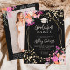 Gold glitter floral watercolor photo graduation invitation