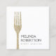 A modern business card template featuring a glittery gold fork along with your name or business name for the perfect visual identity. Great for event planners, catering businesses, chefs, and more. © 1201AM CREATIVE