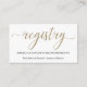 Simple elegance.  Beautiful calligraphy accented with a faux gold glitter effect.  Using a business card format easily and efficiently communicates your gift registry.
