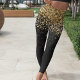 A trendy chic leggings design featuring elegant gold sparkling glitter on a black background.