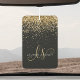Glam Gold Glitter Elegant Monogram Air Freshener. Easily personalise this trendy chic air freshener design featuring elegant gold sparkling glitter on a black background. The design features your handwritten script monogram with pretty swirls and your name.