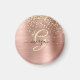 A trendy design of faux brushed rose gold metal background and gold glitter with gold monogram and black script name.