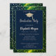 Gold Glitter Graduation Cap,Polka Dots,Green Invitation