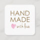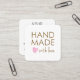 Personalised handmade with love business cards to add to your customer's orders. The front of the gift tag says Handmade with love in a gold glitter design and a little pink watercolor heart. The back has a place for you to add your business logo and name/website. This would be a great touch to your handmade orders for Etsy sellers, local artist and craft businesses and more. Please note there is not actual glitter on this product but a design effect.