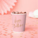 It's a great way to set the tone for their pink and rose gold-themed party, or birthday gift. This "Happy Birthday" paper cups features blush pink background with an elegant script headline. Mix and match with "Gold Glitter Confetti" paper cups from our Blush Happy Birthday Celebration collection.