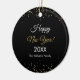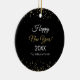 Gold Glitter Happy New Year Black Ceramic Ornament