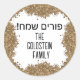 Gold Glitter Happy Purim Hebrew Custom Name Classic Round Sticker