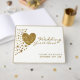 This guest book is perfect for any glitzy themed wedding. The design features a gold glitter heart and gold glitter stars, perfect for any modern wedding celebration.