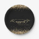 Gold Glitter Heart Script Black Engagement Thanks Paper Plate