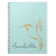 Gold Glitter Hummingbird and Custom Name on Teal Notebook