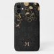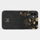Beautiful gold glitter leaves on the top and black floral damask over diagonal stripes. Optional monogram
