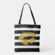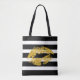 Gold Glitter Lips And Black White Stripes Tote Bag