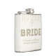 This stylish flask design by The Spotted Olive™ features a soft background with an image of streaming gems coming down from the top and the word "bride" filled with an image of gold glitter. PLEASE NOTE: THIS DESIGN ONLY FEATURES A PRINTED IMAGE OF GLITTER; THERE IS NO PHYSICAL GLITTER USED OR INCLUDED; THERE ARE NO EMBELLISHMENTS. THIS IS A FLAT PRINTED INVITATION. Click the "Customise It" button to go to the design tool where you can change the font, type size, type colour, text positioning and more. Copyright 2014-Present | The Spotted Olive™ | All Rights Reserved