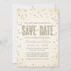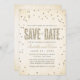 This modern & stylish wedding save the date announcement design by The Spotted Olive™ features an image of gold glitter look confetti dots on a soft weathered background with the word "SAVE THE DATE" filled with an image of gold glitter. PLEASE NOTE: THIS DESIGN FEATURES AN IMAGE OF GLITTER CONFETTI. THERE IS NO GLITTER, CONFETTI OR EMBELLISHMENTS. THIS IS A FLAT PRINTED DESIGN. COPYRIGHT ©2014 The Spotted Olive™. All Rights Reserved.