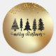 Gold Glitter Merry Christmas Tree Classic Round Sticker