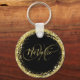 Gold Glitter Monogram Name Black Glamourous Key Ring