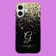 Gold Glitter & Monogram White Script Name on Black Case-Mate iPhone Case