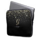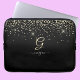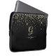 Gold Glitter & Monogram White Script Name on Black Laptop Sleeve