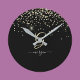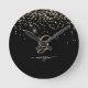 Gold Glitter & Monogram White Script Name on Black Round Clock