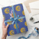 Gold Glitter Moon and Stars Pattern on Blue Wrapping Paper