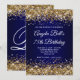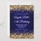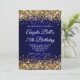 Gold Glitter Navy Blue Ombre 75th Birthday Invitation
