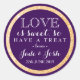 The perfect finishing touch for a food wedding favour, this faux gold glitter and deep plum round sticker features your names and wedding date along with a sweet message of love. This label is a classy mix of chic and modern with some sparkle and would look great on on jars, boxes, mint tins and even to close a wrapped package. Don't forget to personalise with your name, event date and to change the background colour to one of your choice by clicking the "Customise it" button.