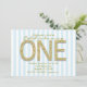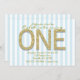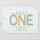 GOLD GLITTER ONE Blue Stripe 1st Party Invitations.