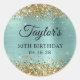 Gold Glitter Pale Turquoise Foil 50th Birthday Classic Round Sticker
