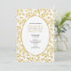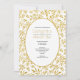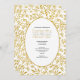 Gold glitter pattern of leaves trendy rectangular wedding invitation. A lovely wedding design featuring a pattern made of leaves in gold glitter and your text in an oval white frame.