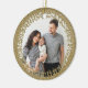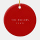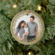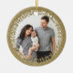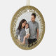 A festive ornament featuring circular gold glitter confetti wreath with customer photo in the centre on the front. The back has an area for text including family name and year on a festive red background that is customisable to suit your needs. This is perfect for gift giving season or adding a commemorative keepsake to your own tree. Great for newborns, newlyweds, graduates, kids, families and pets.