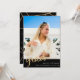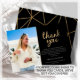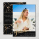 Looking for the perfect way to share your graduation news with your family and friends? Look no further than our stunning graduation announcement cards! With a gorgeous photo of the graduate and the word "grad" in gold glitter print script on a sleek black background, these cards are sure to catch everyone's eye. The reverse side features a beautiful gold and black geometric print and a special message of your choice.