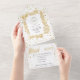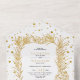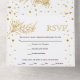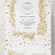 This all-in-one winter Christmas wedding invitation showcases a beautiful design with a gold pine frame adorned with cones, needles, and gold confetti borders. The invitation is elegant and festive, perfect for a winter wedding celebration. The invitation also includes a detachable RSVP card for the convenience of the guests.