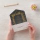 Gold glitter pine, confetti charcoal grey wedding all in one invitation