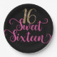 Gold Glitter Pink Black Sweet 16 Birthday Party Paper Plate
