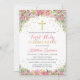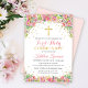 Gold Glitter Pink Floral First Holy Communion Invitation