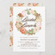 Invite guests to your event with this customisable autumn bridal brunch invitation. It features watercolour floral wreath of pumpkins, hydrangea flowers, peonies, roses, and autumn leaves with faux gold glitter accents. This pumpkin invitation is perfect for fall bridal showers.