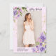 Celebrate the graduate with this elegant design featuring hand painted lavender and purple watercolor flowers accented with soft gold glitter details. The delicate botanical frame creates a stylish and feminine look perfect for spring and summer celebrations. The front highlights the event details while the reverse showcases a large photo for a personal touch. Ideal for high school or college graduation parties, open house celebrations, and garden-themed gatherings. All wording can be easily updated to fit your graduate’s special day.